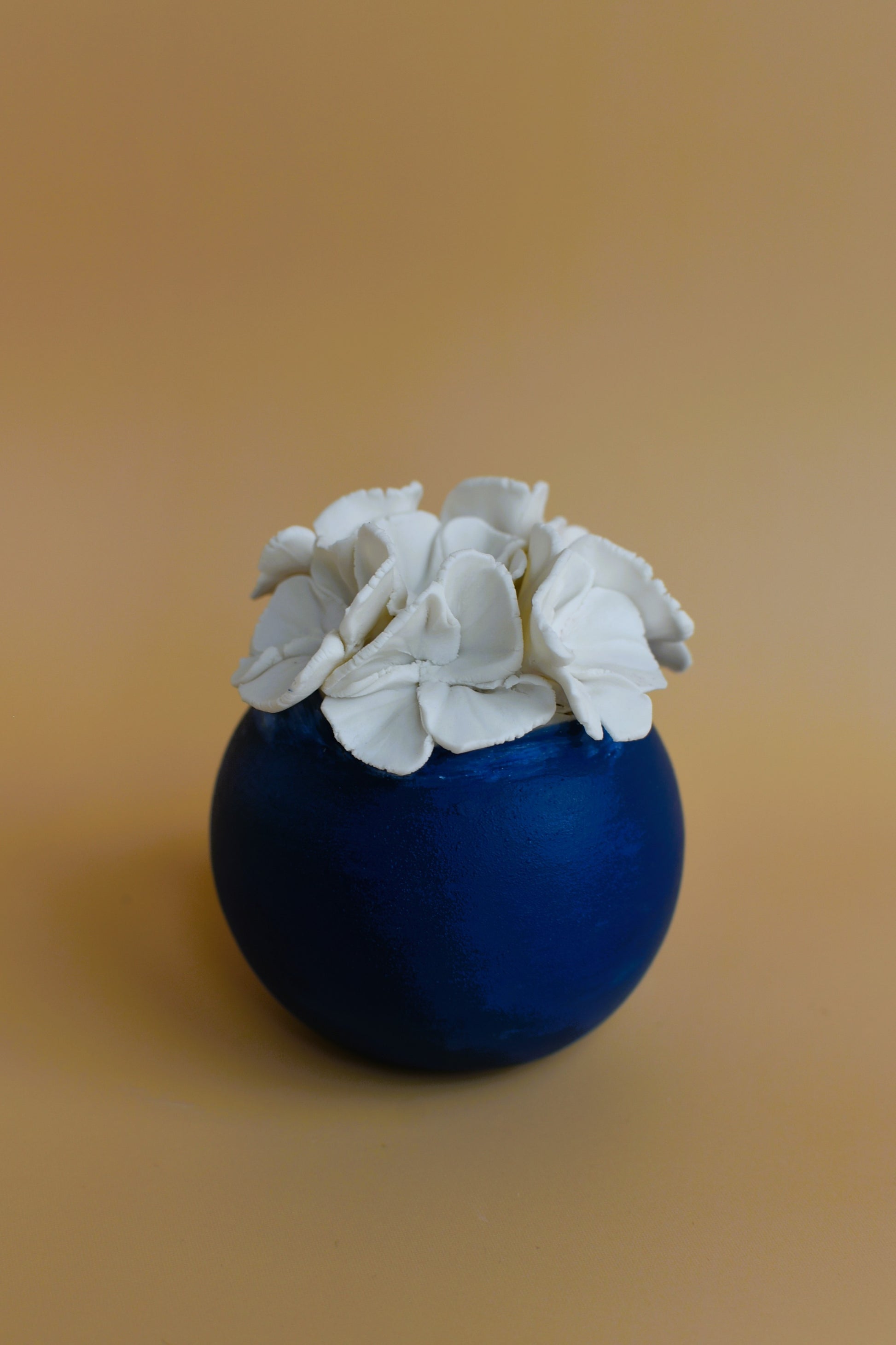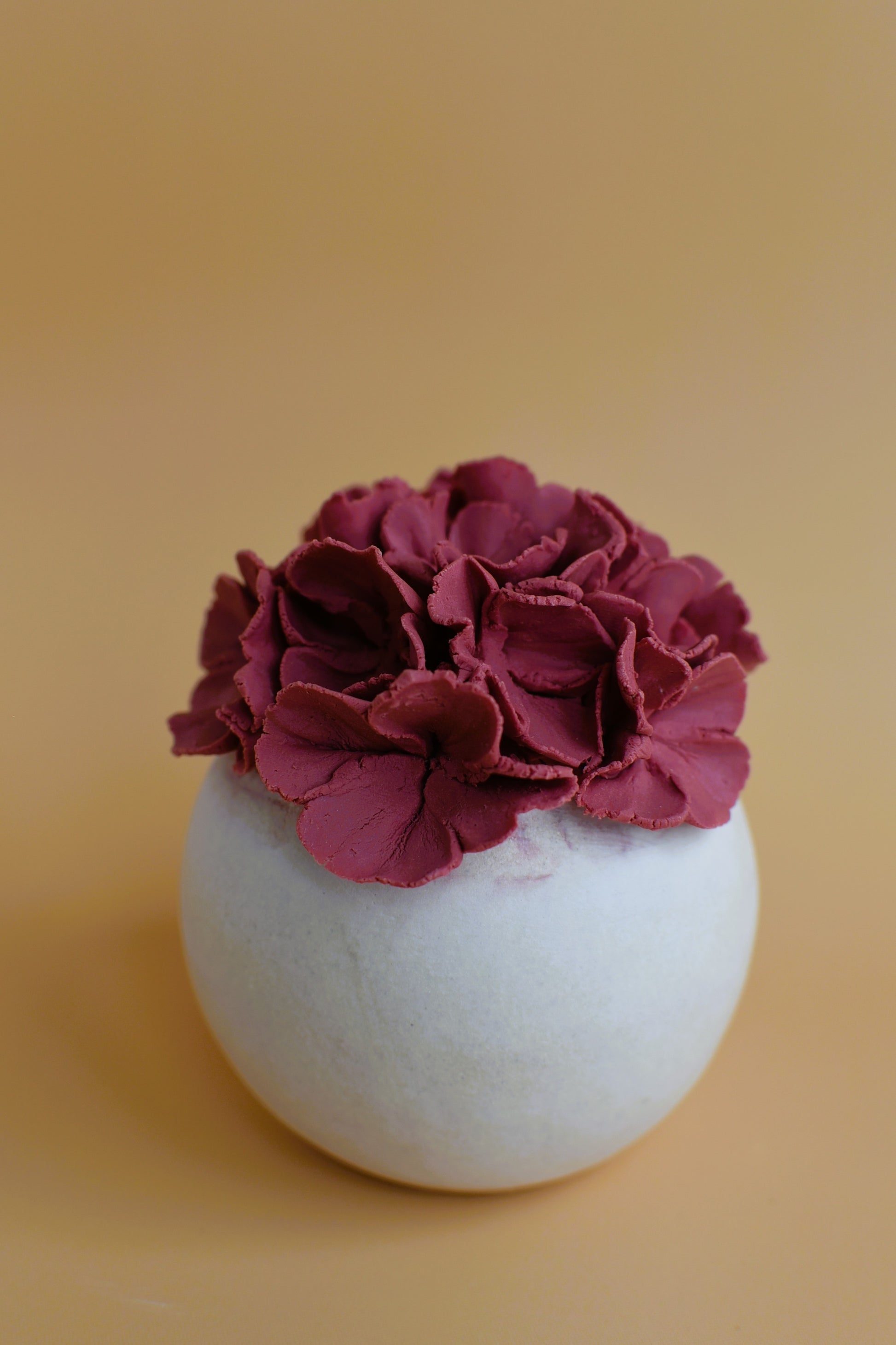 Pièce sculpturale – Grès blanc, porcelaine & hortensia